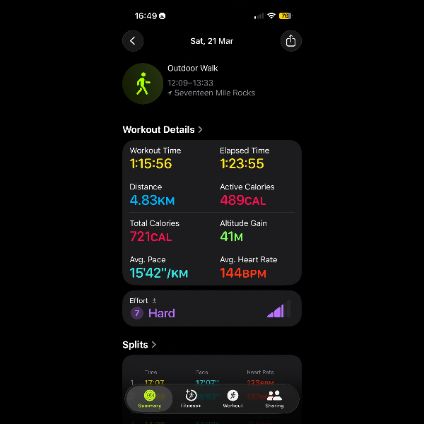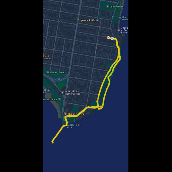 Monday 9th Mar Day 2 of the Fit to Fly Challenge saw me take on the Wynnum Esplanade walking from the lower part of the esplanade, all the way to Breakwater park then back. This trip was 3.76km. My watch died before the end so had to spilt into 2 session on apple workout.